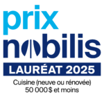 L’équipe de Simard Cuisine et Salle de bain a obtenu carte blanche pour réaliser cette splendide cuisine au design audacieux et épuré dans une maison neuve située à Québec. L’espace devait toutefois intégrer une hotte mise en valeur, un coin café, un coin bar, et un garde-manger walk-in dissimulé. Optimisant l’espace au maximum et facilitant la circulation, la cuisine offre des armoires grèges ponctuées de bois et de rondeurs, des comptoirs et des dosserets en Dekton effet marbre, des finitions soignées et un alignement parfait des portes. Un projet distinctif qui traversera le temps!