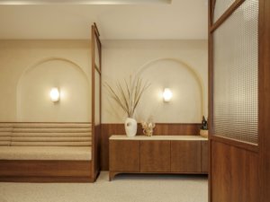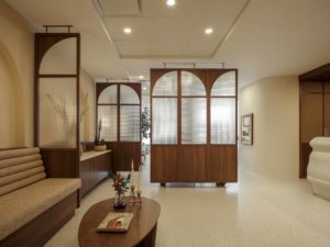 Située à Québec, cette clinique de chirurgie esthétique alliant chic, raffinement, professionnalisme et teintes apaisantes surpasse les standards. Ce centre médical invite ses clients dans un monde à part grâce à plusieurs éléments originaux comme le meuble d’accueil en béton imprimé, les portes dissimulées séparant l’accueil de la section opératoire, l’utilisation de la peinture à chaux et les nombreux accents tout en arrondis. Cette splendide réalisation intégrant des finitions de haute qualité est le fruit du travail de SIRA Construction en partenariat avec l’Agence spatiale architecture, Cuisine Laurier et de nombreux autres collaborateurs.